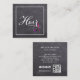Modern elegant hand lettered typography design in white, set over a chalkboard background... with your name on the front, and fun tools with a splash of modern hair colour. Your contact information, on the back of the card, includes your email address, website address, social media icons and your QR code. Additional versions of this design are available without a website and / or social media or QR code, for those professionals who do not use them. Perfect for all Hair Professionals. Add your details by following the "Personalise this template" link. You can upload your own QR code image by following the same link. If you would like assistance, please feel free to reach out to me via message here on Zazzle, or via email. susanmingaydesigns@gmail.com