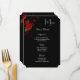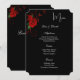 This Menu Card template is shown on basic paper in black with a lovely red rose print design. Script and standard text in white.