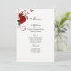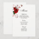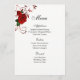 Menu Card is shown on the basic paper in white with a lovely red rose print design. Script and standard text in a black colour.