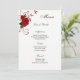 This Menu Card template is shown on basic paper in white with a lovely red rose print design. Script and standard text in black.