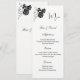 This Menu Card template is shown on the basic paper in white with a lovely black rose print design. Script and standard text in a black colour.