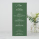 Dark green menu card to accompany the southern-charm, nature inspired Wrightsville Manor invitation suite.