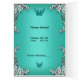 Menu Dinner Card Silver Teal Blue Butterfly