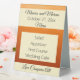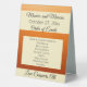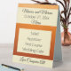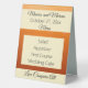 Tabletop Tent Menu and Order of Events program, an easy way to tell your guests what to expect during your wedding or other event. A simple menu on the front with a slightly more detailed event program. Put a few on each table so that your guests can refer to them throughout the event, and share with their table mates what is happening next. The front of the design is the menu, with templates for the couple's name, the date, and sample entries for a basic four-course meal on the front. The order of events program on the back has the same underlying design with templates for the couple's name and the date, along with space for up to 9 entries. You can modify all the text and fonts to suit your needs for your event. This design is part of the Autumn Amber Skies Wedding Event design suite and collection. Warm autumnal colours with a clean, simple, and elegant design work for fall or sunset weddings or events. The warm colours of orange, yellow, and brown, with a wide band of cream, invite people to share the warmth of your relationship. Customise fonts, font sizes, and font colours to create a message that is uniquely your own. Like the basic design but not this format? Check this same collection for other variations on menu cards, programs, and other wedding and event items using this same family of designs.