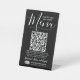 Welcome customers to your business and share your online menu with a custom QR code acrylic tabletop pedestal sign. To create your own QR code using the generator, simply type the website URL into the template. All wording is simple to personalise or delete, and the colours, fonts and logo transparency are also are easy to customise with the Zazzle design tool. The scannable code makes it easy for clients to view a contactless online menu, price list, available services and promotional advertising. The modern black and white design features stylish script calligraphy, elegant minimalist typography, your corporate logo branding, and one QR code. Suitable for small businesses as well as large corporations, this company branded sign provides modern convenience to your customers with chic professional style.
