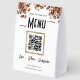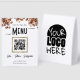 Point of sale qr code like share subscribe paper table tent. Add your own graphics and logo.