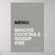 Brighten up your kitchen with humour! “MENU: SNACKS, COCKTAILS, GOSSIP & VIBES” poster in modern typography. Available in multiple colour backgrounds, perfect as home decor, gifts, or kitchen wall art.