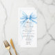 This baby shower menu, adorned with a blue watercolor bow, is perfect for celebrating your pregnancy and the arrival of your baby. The delicate pastel design with airy ribbons creates an atmosphere of comfort, warmth, and joyful anticipation.
