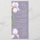 Menus for a modern wedding. Delicate irises in soft lilac shades are depicted against a pastel background, creating an atmosphere of sophistication and tranquility. The design is modern and airy, perfect for a stylish, romantic wedding.