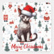 Meow Christmas Devon Rex Cat, Xmas Santa Kitten Square Sticker