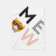 Warm up with this cat themed blanket with the word "meow" in coordinating colours.
