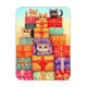 A towering stack of colourful birthday presents guarded by playful, curious cats.