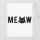 Meow, with black cat face, text design postcard