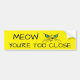 meow you're too close bumper sticker