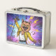 This is a standard metal lunchbox that appears to work just fine. We designed this box ourselves with an uploaded photo and custom text on the front and back. It looks absolutely beautiful except the front of the lunchbox is not centered like it shows in the photo. The print borders don't align with the inset flat part of the box where the preview photo online showed it perfectly centered in there. The back looks nice and centered though.