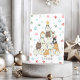 Thia cute Christmas card is the purr-fect card for cat lovers to give or receive. It features a funny doodle of various cats forming a Christmas tree with a yellow star on top. Falling snowflakes and colourful paw prints surround the tree. The front text reads: 'Tis the Season. The inside features colourful Christmas string lights along the top and bottom, a cute cat with a Santa hat, and text that reads: Meowy Christmas.