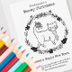 Meowy Christmas Color Your Own Cute Cat Holiday Card features adorable line art drawing of a cute kitty cat walking with a bow tied to her tail and a wreath of winter foliage and shiny berries and flowers. This unique art card makes the perfect lighthearted holiday card sure to bring laughs and cheer to your loved ones. Greeting pun reads, Wishing you a meowy Christmas and a happy mew year! Printed in black and white, this design can be colored in by children (or adults) who love coloring! Have your kids color these for their family, or send to kids who can then color them as a Christmas activity! Personalize with your own greeting and names for a completely custom Christmas card this year!