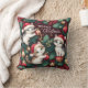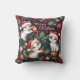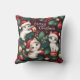 This Christmas pillow is perfect for cat lovers. It features three adorable kittens wearing Santa hats and playing with ornaments. The background is festive green with red berries and gold accents. This pillow will bring a touch of joy and cuteness to your home.