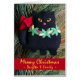 Meowy Christmas for a daughter and her family, Black Cat Ornament. Christmas greeting card features a felt black cat ornament with holly and red ribbon around its neck. Pine bough needles serve as a background. Image and verse copyright © Shoaff Ballanger Studios.