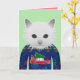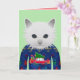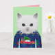 CHRISTMAS SWEATER CAT GREETING CARDS. INSIDE READS: MEOWY CHRISTMAS