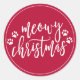 This holiday envelope seal features the phrase "meowy christmas" in a modern white script with little cat paws around it.