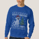 Digitally hand-drawn illustration of a grumpy Santa cat with “Meowy Christmas Ya Filthy Animal” text in blue sweatshirt with knitted ugly Christmas style. Perfect funny holiday gift for cat lovers and festive party vibes!