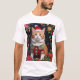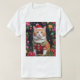 A royal cat wearing a santa Claus costume with a floral background , vintage design
