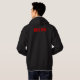 The front of this hoodie is the quote "the merciless Indian savages" from the Declaration of Independence. On the back is "Skoden" slang for "let's go then"