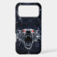 A powerful, roaring polar bear head, meticulously "forged" from viscous liquid mercury. The intense, glowing ruby-red eyes create a striking focal point against the dark, wet basalt rock background. A bold and sophisticated accessory for those who appreciate high-vibrancy, "Boutique" design.