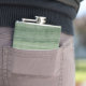 The flask itself is fine. It’s a cheap flask, obviously bought in bulk, however am prepared to overlook that. Given that it is a personalized item, I would have liked to have seen gift boxing instead of the generic packaging. Terrible printing, and/or quality. It’s a cheap, tacky vinyl. It is not cut straight and is also applied in a way that it is overhanging the bottom, causing the glue to catch on items and it will eventually roll and tear, damaging the wrap.