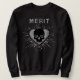This edgy graphic features bold "MERIT" typography above a stylized black skull centered within a distressed heart. Detailed with a vintage-inspired sunburst effect, this design seamlessly blends punk rock vibes with a modern grunge aesthetic, making it a perfect statement for fans of alternative fashion and dark art.