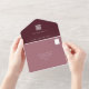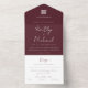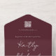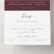 Modern All in One Wedding Invite in Merlot / Burgundy / Wine: This all in one wedding invitation features the bride & groom's first names in a modern handwriting. It has a mail in rsvp card at the bottom that can be used as a postcard.