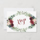 Merlot Navy Blue Floral Bloom Wedding RSVP Card