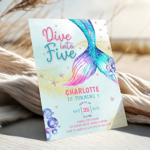 Mermaid Dive Into Five 5th Birthday Party Invitation