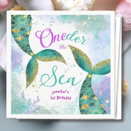 Oneder The Sea! Teal Mermaid Girls 1st Birthday Designed by H-Art Studio Design