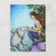 Pretty mermaid adorned in plumeria flowers, giving her dolphin friend a lei necklace.