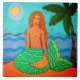 My lovely abstract digital painting of a mermaid under a palm tree printed on ceramic tile