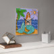 My funky abstract painting of a mermaid under a palm tree makes this lovely wall clock a colourful work of decorative art!