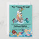 Ahoy Pirates and Mermaids! This cute birthday invitation can be customised for a single birthday boy or girl, for siblings, or twins. It can be for a theme party or a costume party with pirates, mermaids, and undersea creatures. You can have treasure maps and treasure hunts with maps and clues. A pool party would be fun!