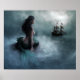 Poster of a mermaid looking out to sea at a pirate ship. See matching wrapped canvas print. See the entire Shipwreck Poster collection in the DECOR | Wall Art section.