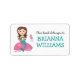 Cute book labels featuring a little mermaid with long, brown hair sitting on a rock. Beside her are a pink seahorse and a starfish. Customisable text "This book belongs to [Name and Surname]". Ideal for tagging a little girl's school books.