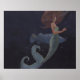 This beautiful mermaid floats in the water, coyly looking over her shoulder. Her red shock of hair flows upward, and a giant blue fish floats quietly beside her. Her long green tail curls at the ends. The fish looks like a giant grouper fish. The green mermaid painting is a vintage-inspired mermaid painting by artist Mary Hubley. Mermaid sightings are rare and wonderful, and many people think they're only folklore mythological creatures, but those of us who live by the sea know otherwise.