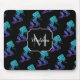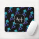 Mermaid aqua blue ombre Sparkles pattern Monogram Mouse Pad