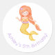 Make your child's birthday party unforgettable with these whimsical mermaid themed stickers. It’s time for a mermaid birthday celebration! You can personalise this design by clicking on "Personalise this template" or if you wish to change the font, colours or arrange the design elements in a different way you can click on "Edit using Design Tool". You can also turn on a different mermaid.