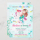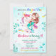 This Mermicorn party invitation features dancing little unicorn and a mermaid with cool hair riding it.