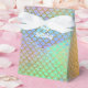 Bright pastel mermaid theme party favour boxes for birthday party or other special occasions. Allover printed, metallic gold mermaid scales effect on girly pastel coloured background in shades of ocean blue, pink, purple, and aqua green. Front reads 'Birthday' in elegant, white lettering with personalised name above. Festive, bright party favours for nautical party themes, girls mermaid birthdays, pool party, beach party, summer event, under the sea theme, and pastel party colours. We have coordinating mermaid party invitations and nautical party decor in our Zazzle.com/angela65* shop.