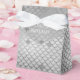 Elegant mermaid theme party favour boxes for birthday party or other special occasions. Allover printed, metallic glitter silver mermaid scales look. Front reads 'Birthday' in elegant, white lettering with personalised name above. Note: All images are printed. Not actual metallic or glitter. Pretty silver colour party favours for nautical party themes, girls mermaid birthdays, pool party, beach party, summer event, under the sea theme, and silver party colours. We have coordinating mermaid party invitations and party decor in our Zazzle.com/angela65* shop.