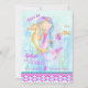 Pretty whimsical mermaid hugging seahorse watercolor and graphic art birthday invitations. Personalise with your own name and birthday age on the front currently reads Dive in for a Splish and a Splash. It is Estelle's 8th Birthday Bash. On the reverse simply replace the sample text with your own party details and RSVP. Original watercolor painting and design by Sarah Trett www.sarahtrett.com for www.mylittleeden.com on zazzle.