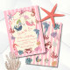 Mermaid Birthday under the sea coastal hand drawn Invitation