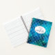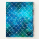 This notebook features a cute mermaid inspired blue and green scallop print pattern along with a custom name and the word "Notes" on the front cover.